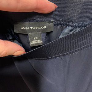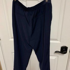 Ann Taylor Pant-Navy. Soft, silky material with an elastic waistband and wide leg. You could dress these up for comfortable work pants or dress down for a casual day or evening night out. Great condition, no signs of wear. Goes great with flats or a heel.