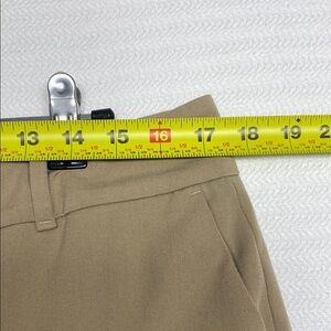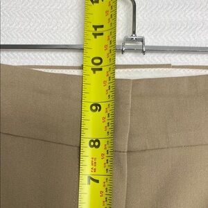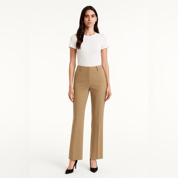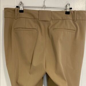 Keywords: Ann Taylor, dress pants, trousers, flare leg, flat front, midrise, beige, tan, khaki, work pants, office wear, business casual, professional, polished, sophisticated, classic, timeless, versatile, neutral, earth tones, workwear, career wear, bootcut, slight flare, tailored fit, structured, corpcore