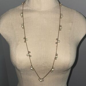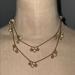 Excellent condition, Ann Taylor Pearl and Rhinestone Necklace. Gold plated balls with rhinestones and pearls on chain-link necklace see picture for necklace length chain is not adjustable. Coordinating hoop earrings also available for sale in my closet.