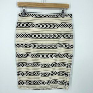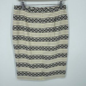 Ann Taylor Pencil Skirt Size 4 Ivory Black Geometric Stripe