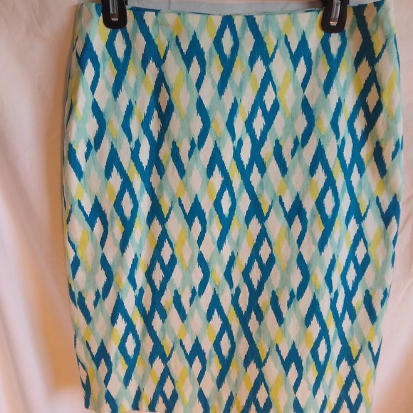 This like new Ann Taylor Pencil Skirt, has watercolor color style print in blue and yellow. Fully lined, with back slit. Perfect summer office skirt. Check out the shoes in my closet to find the perfect match. Thank you for stopping by my closet.
