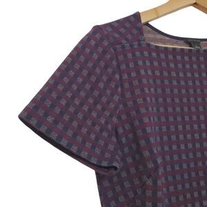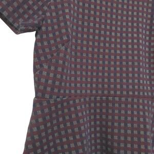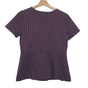 Ann Taylor | Peplum Square Neckline Checkered Short Sleeve Structured Top