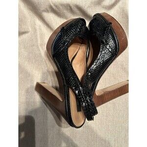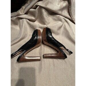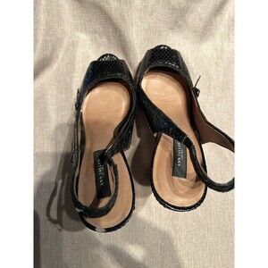 Ann Taylor Perfect Peeptoe Pump Swiftie 8.5 y2k Snakeskin Leather Slingback Heel