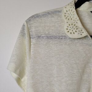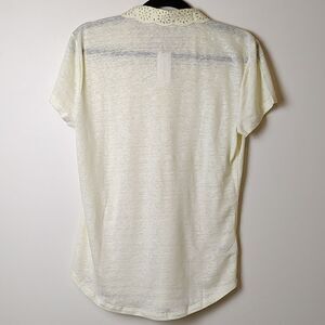 Ann Taylor Peter Pan Lace Collar Linen Top Semi Sheer Light Yellow Size M NWT