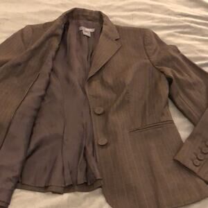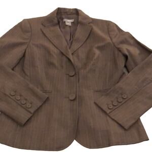 Ann Taylor Petite 8P Brown Pinstriped Suit Jacket Blazer Office Professional