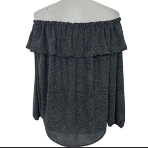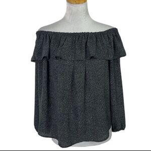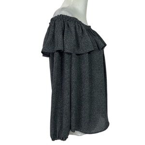 Ann Taylor Petite Black and White Zig Zag Print Off the Shoulder Blouse Size MP
