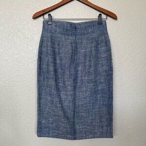 Women’s size 0P Ann Taylor Petite Heather blue linen blend pencil skirt in excellent like new condition, clean nonsmoking home. Approx 13.5” across waist, 24” side length.
