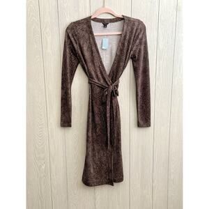 Ann Taylor Petite Brown Animal Print Wrap Dress 2P NWT