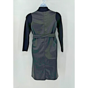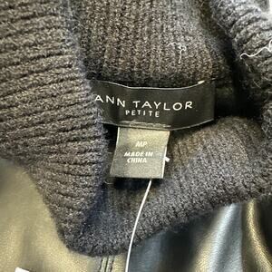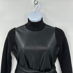 Ann Taylor Petite Faux Leather Knit Dress Medium Mob Wife Turtleneck Belt New
