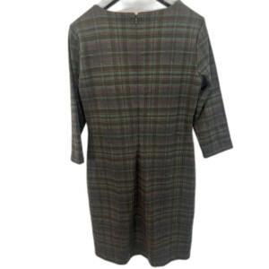 This 3/4 length sleeve, winter weight dress is a wool blend, beautiful plaid. Brand new with tags. Knee length.
