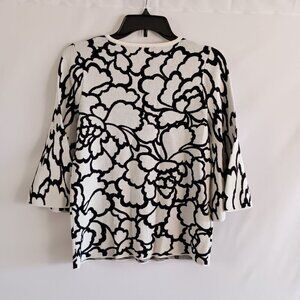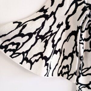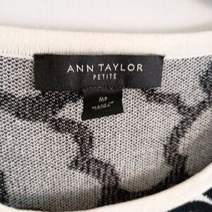 Ann Taylor Petite Flare Sleeve Sweater PM Black White Dressy Knit Top