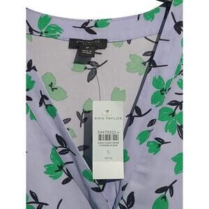 Ann Taylor Petite Floral Mixed Media Pleat Front Top Deep Wisteria Size SP NWT