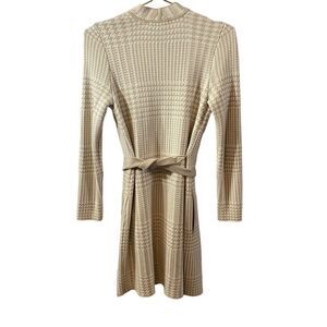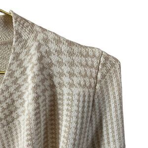 Ann Taylor Petite Houndstooth Beige White Belted Cardigan Sweater Size XSP