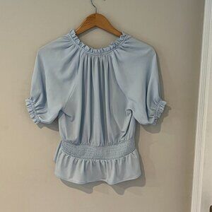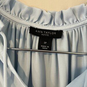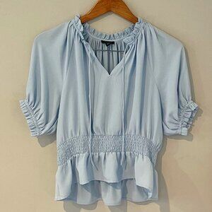 Ann Taylor Petite Light Blue Crossover Smocked Waist Blouse Top Size Small