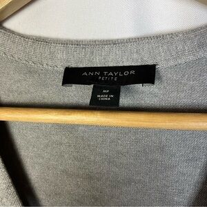Ann Taylor Petite Light Gray V-Neck Silk Blend Midi Sweater Dress MP
