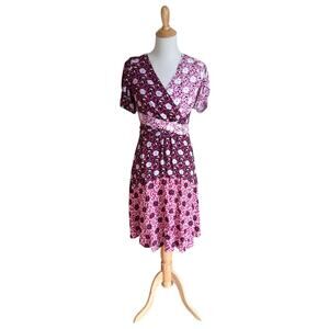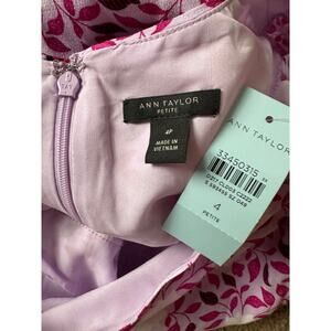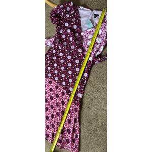 Ann Taylor Petite Mixed Floral Wrap Midi Dress Purple White Puff Sleeve V-Neck