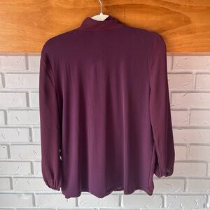 Ann Taylor Petite Mixed Media Lace Tie Neck Blouse in Plum Rose, Small Petite SP