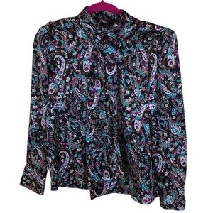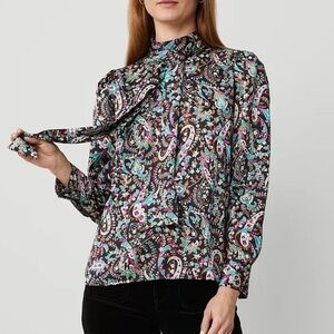 Ann Taylor Petite Paisley Mock Tie Neck Puff Sleeve Top size XSP