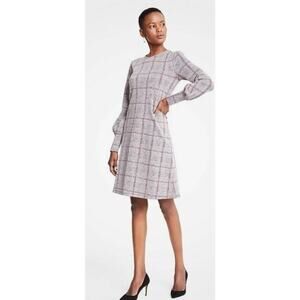Ann Taylor Petite Plaid Shift Dress with Bishop Sleeves Women's Size SP