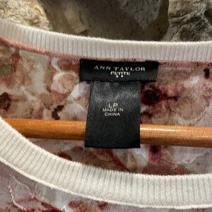 Ann Taylor Petite Shirt Sheer Floral Body with Lightweight Knit Sleeves Size LP