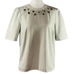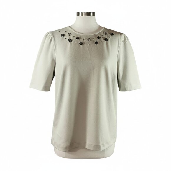 Chic Ann Taylor Petite Jeweled Neckline Top – Soft Grey – Size MP