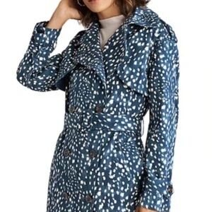 XXSP petite sized teal spotted trench coat. Modern, oversized cut, can be belted for a slimmer look. Knee length. New with tags, never worn. Perfect for work, business casual. Smoke-free, pet-free home.