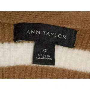 Ann Taylor Petite Striped Ribbed Long Line Open Brown/ White Cardigan XS