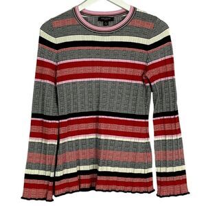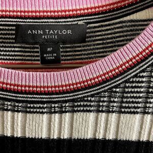 Ann Taylor Petite Striped Ruffle Cuff Sweater, size medium petite