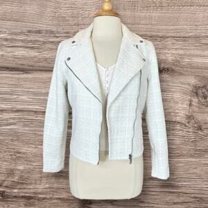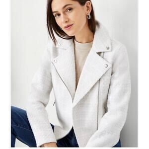Ann Taylor Tweed Moto Asymmetrical Zip Jacket in Winter White Size 6P