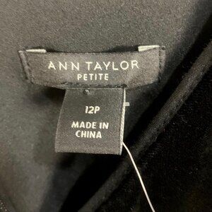 Ann Taylor Petite Velvet V-neck Flutter Short Sleeve A Line Dress Black Size 12P