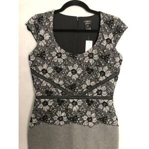 Ann Taylor Petite Women's 4P Fitted Cap Sleeve Dress Gray NEW