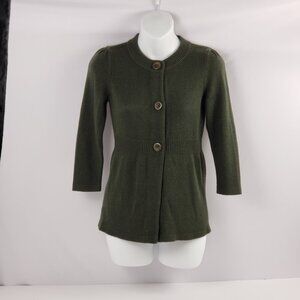 Ann Taylor Petite XSP Green Cardigan Sweater Womens Button Down 3/4 Sleeve