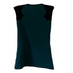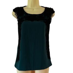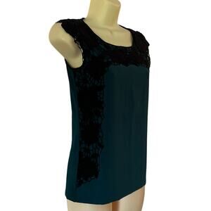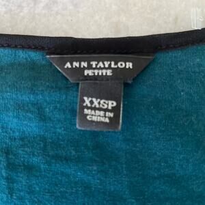 Ann Taylor Petite XXSP Teal Blue Knit Top with Black Lace Trim Office Dressy
