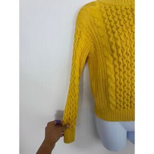 Ann Taylor Petite Yellow Cable Knit Button Shoulder Sweater SP