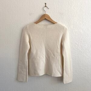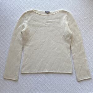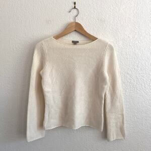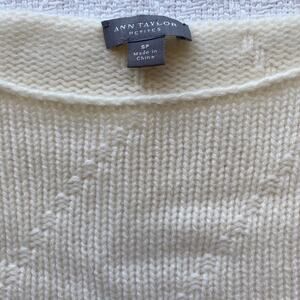 Ann Taylor Petites 100% Cashmere Ivory Knit Sweater Scoop Neck Long Sleeve Small