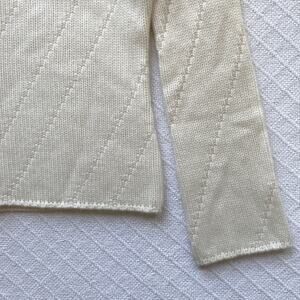 Elegant and timeless, this Ann Taylor Petites ivory cashmere sweater is the perfect blend of sophistication and comfort. Crafted in luxuriously soft cashmere, it features a classic scoop neckline, subtle diagonal knit pattern, and slightly flared bell sleeves for a feminine touch. This piece transitions seamlessly from work to weekend wear. A true wardrobe staple that elevates any look.