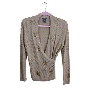 Ann Taylor Petites Beige Sequin Wrap Silk Blend Sweater Size SP