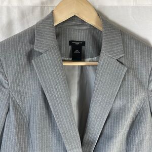 Ann Taylor Petites Grey Striped Single Button Fitted Blazer Sz 10P