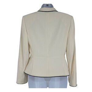 Ann Taylor Petites Ivory Button-Up Blazer With Black Piping Womens 4P