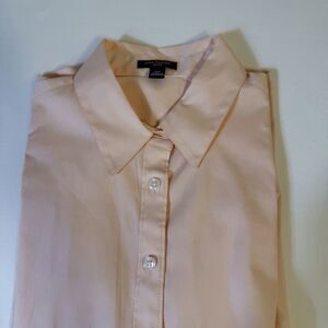 The Ann Taylor Petites Light Peach Button-Up Shirt in women's size 4P.