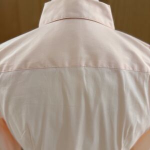 This woven shirt features long sleeves and a button-up style. The light peach color adds a touch of femininity, while the basic style makes it easy to pair with any outfit.
