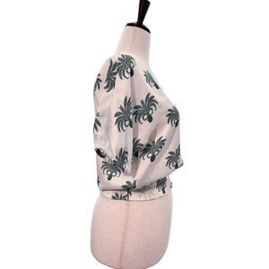 Ann Taylor Pineapple Blouse Cropped Short Gathered Sleeve Size Large White/Green