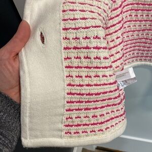 Barbiecore pink and white striped cardigan from Ann Taylor