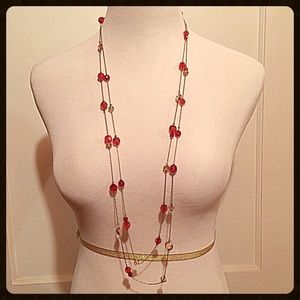 {Ann Taylor} Light and Dark Pink Crystal and Gold Necklace. 36.5” (full length clasped), bead width .2” to .4”.