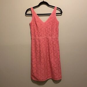 Ann Taylor | Pink Sleeveless Floral Midi Dress | NWT Size-0P Pit to pit-16 Shoulder to hem-35 Waist-13 1/3 Pink Floral textured design throughout Zipper back 75%Cotton 25% Nylon Fully Lined New with tags! A40