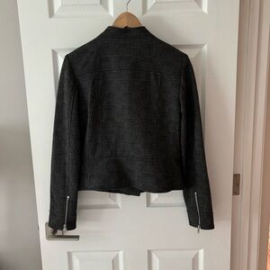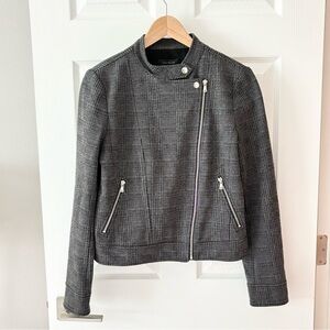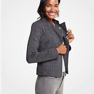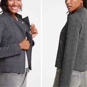 Ann Taylor Plaid Knit Moto Jacket in Gray Plaid size 6