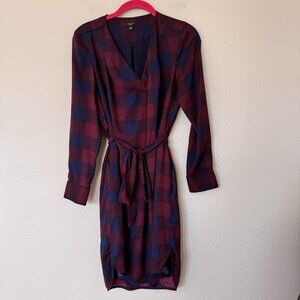 Ann Taylor Plaid Mini Dress with Tie Belt Size Small Petite Pockets