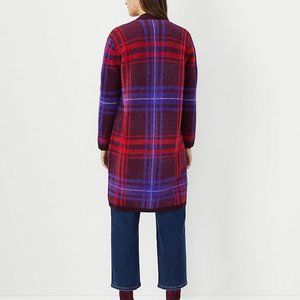 Ann Taylor Plaid Open Coatigan Plum Rose