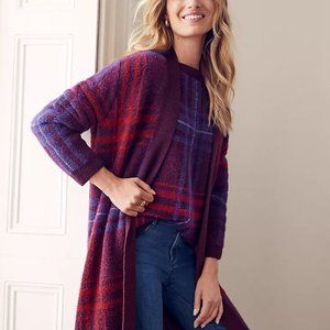 Ann Taylor Plaid Open Coatigan Plum Rose Size M