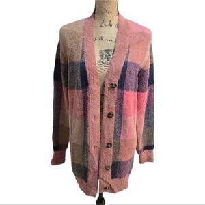 Ann Taylor Plaid Pink and Blue Women's Cardigan Sweater Size Small
